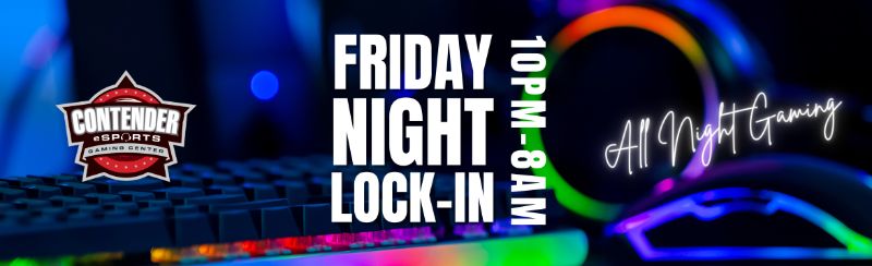 Join us for an unforgettable gaming extravaganza at the Friday Night LOCK-IN, Springfield’s top overnight gaming event! From 10:00 PM to 8:00 AM, get ready for non-stop gaming, complimentary pizza, thrilling prizes, and exclusive discounts that will keep you on the edge of your seat.