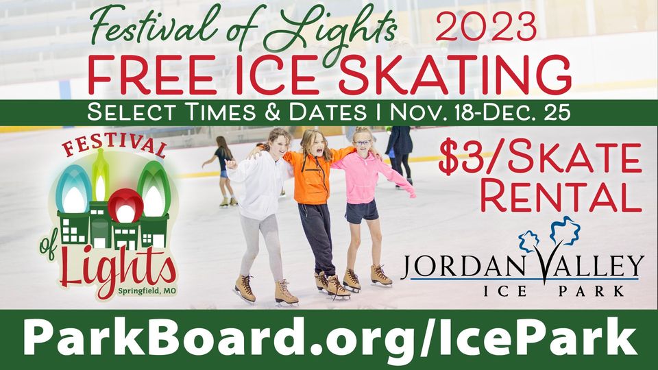 Join us at Jordan Valley Ice Park for FREE Ice Skating during the annual Festival of Lights display!Rent skates for $3/pair (or bring your own)  All ages welcome. Select Dates and Times ONLY, Nov. 18-Dec. 25, 2023: • Sat., Nov. 18 (FREE skate rentals) 5-8 p.m. • Thurs., Nov. 23 (Thanksgiving Day) 7-8:30 p.m. • Sat.,... Read more »